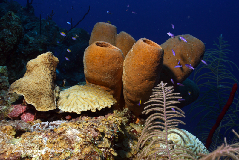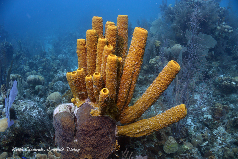 Orange tube sponge and sea fans