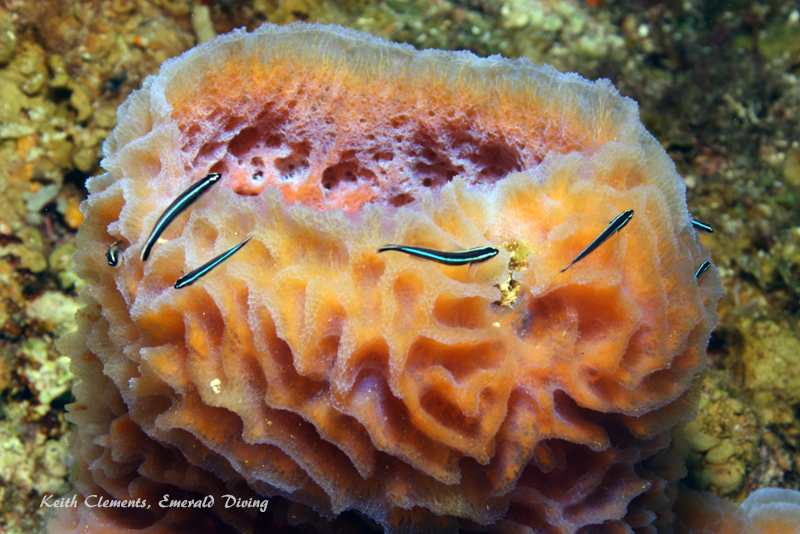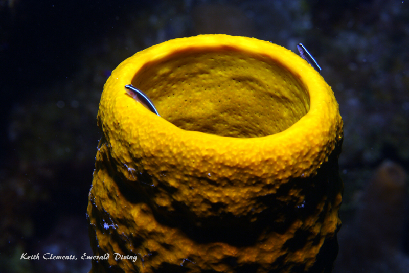 Orange tube sponge and cleaner gobies