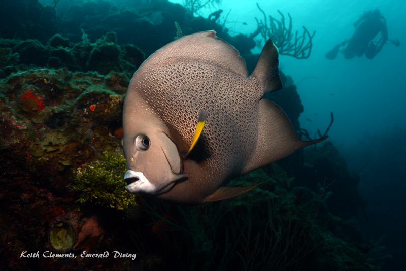 Reef fish. As mentioned above, massive schools of reef fish just aren’t common - although there was a school of 50 or so chubs that seemed to always be hanging out under the Sundancer II when we were at Lighthouse Reef. I had great fun taking in the variety of fish inhabiting the reef. Some of my favorites were adult and juvenile drums, a rather bold grey angel that interacted with me for 10 minutes, French angels (including a pair of striking sub-adults), yellowheaded jawfish (in the sand), indigo hamlets, queen angels, massive Nassau groupers, several species of hogfish, and even an Atlantic spadefish - there are just too many to name.
