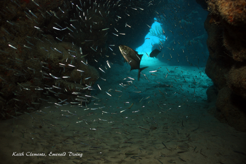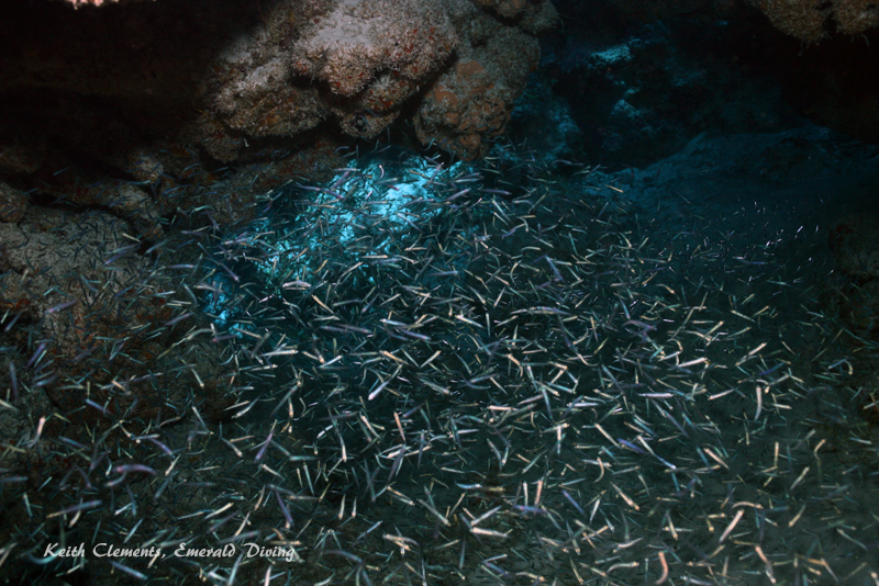 Silversides schooling in a cave