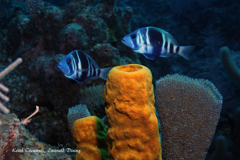 Favorite Sites: My favorite sites were Half Moon Caye (Lighthouse Reef) and Sandy Slope (Turneffe Islands). Half Moon Caye offered a nice wall that looked out into the blue, a decent reef pocked with channels and caves to explore, and a sandy flat. It was like three dives in one, and I saw everything from stingrays to turtles to barracuda to large groupers. In two of the caves I found schools of thousands of tiny silversides hiding out. We did two dives here, but I could have spent two days at this site. It is an amazingly beautiful site!