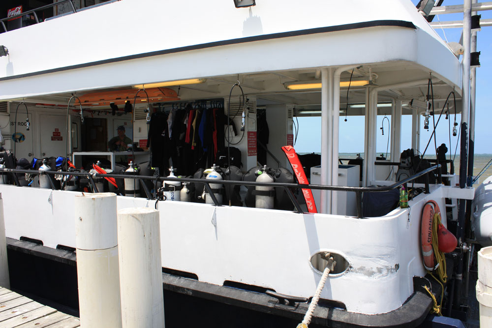 The boat supplied aluminum 80 tanks, although Jon opted to upgrade to a low pressure steel 100 and a 19 cu ft pony tank (being solo divers, we always dive redundant air) which the Sundancer II provided. Almost any basic scuba gear and some camera gear was available for rent. Rebreathers were not allowed.