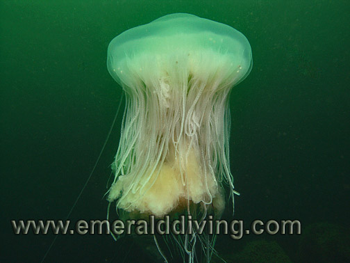 A magnificent fried-egg jellyfish at Flagpole Point. This one is huge - it's bell spans 18".