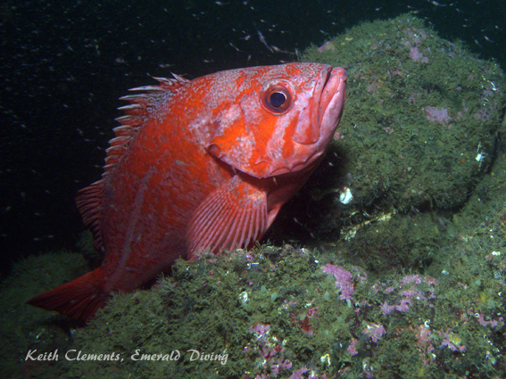 Rockfish populations near the wall were relatively healthy compared to years past. Most noticeable were some rather large vermilion rockfish that followed me around for a good part of my dive. Clint and I readily found black, copper, quillback, Puget Sound, and yellowtail rockfish around the reef.