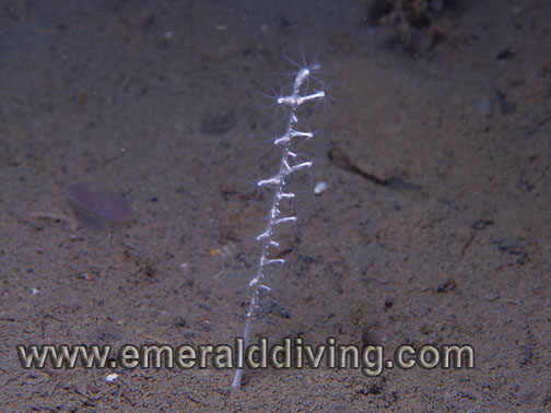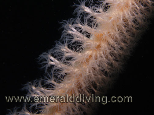 Part of my agenda for the day was to get some shots of seawhips for the Species Index as I have seen seawhips at this site before. Since seawhips can't "run" to far, I presumed there was a good chance I could find them again. I found a wonderful small garden of seawhips just south of the wall in 85 feet of water. I also found juvenile seawhips around the rocky mound above the wall.