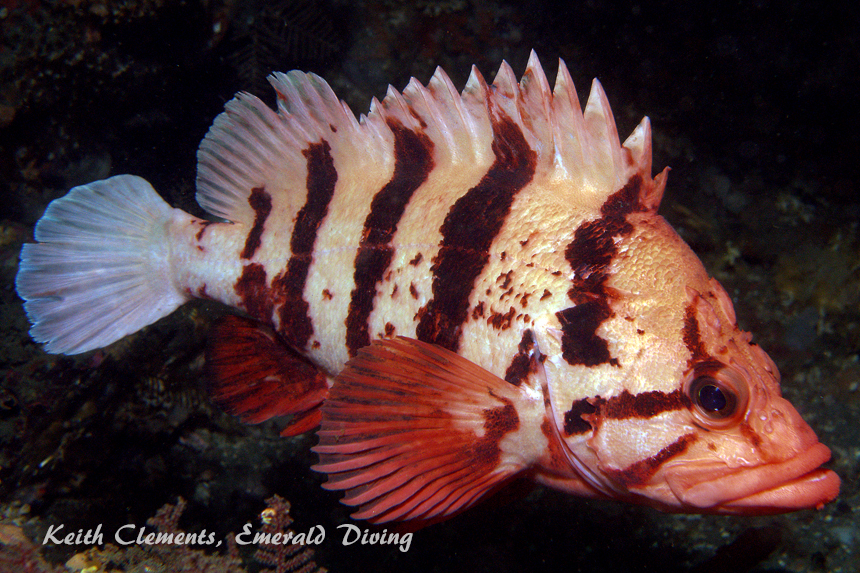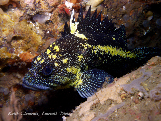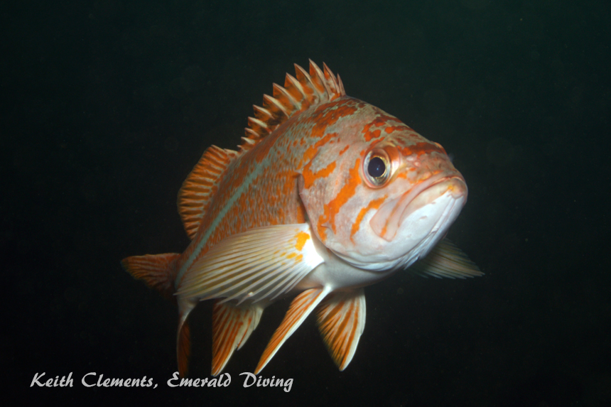 Schools of black rockfish occupy the kelp beds in the shallows. Tiger, vermilion, China, copper, canary, blue, and yellowtail rockfish prefer the deeper waters of the canyons. This is one of the few sites where I have seen an adult yelloweye rockfish. Diving Waadah Island fingers is always an adventure - and sometimes a workout.
